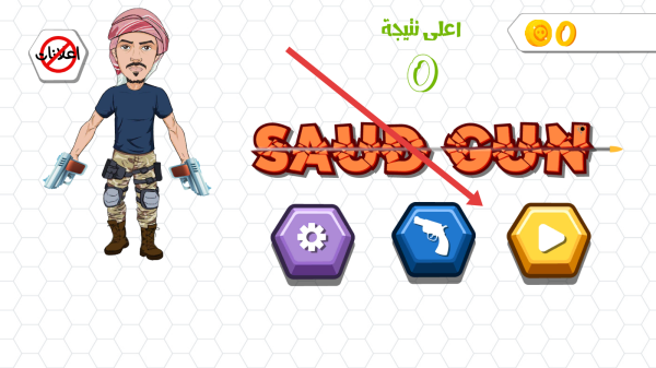 1、通过点击主界面黄色【播放】按钮(البدء),进入《Saud-Gun》,操控角色,开启射击战斗。