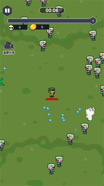 1、滑动屏幕控制角色走位,自动攻击周围敌人。
