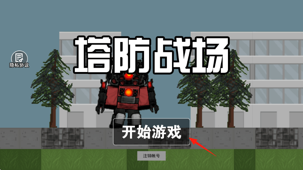1、在游戏主界面,点击箭头所指的【开始游戏】按钮,进入塔防战斗关卡。