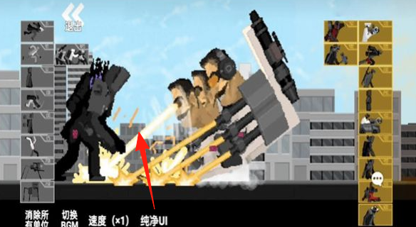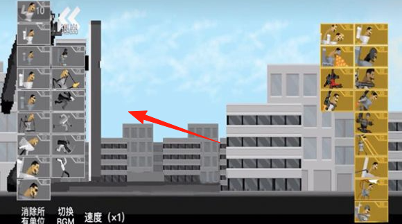 3、当敌人如箭头所指出现时,注意观察战场形势,适时使用“消除所有单位”等功能来调整策略,并根据敌人强度,【及时补充或升级战斗单位】,确保防线稳固。