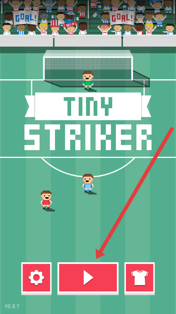 1、进入微射门的游戏界面后,点击中间红色【播放按钮】开启足球对战,这是进入游戏的第一步操作。