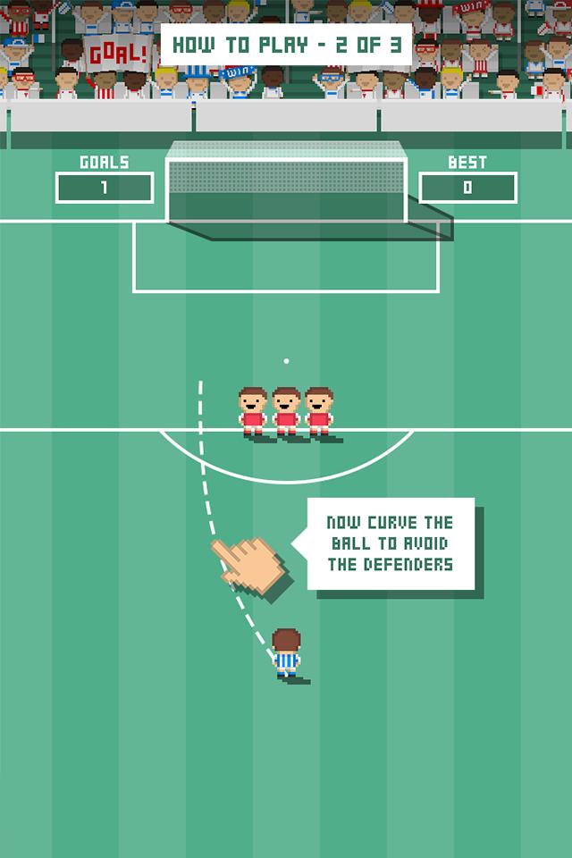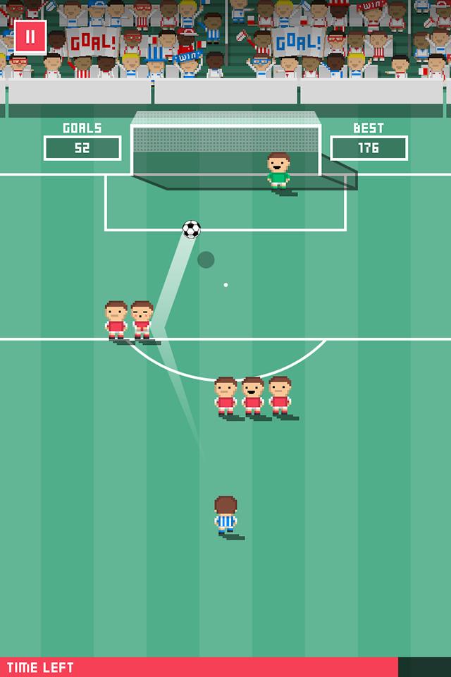 微射门以足球任意球为核心,重现贝克哈姆式香蕉球技巧,采用像素风格打造竞技体验,设置各种稀奇古怪的障碍,旨在锻炼操控者对弧线与力量的判断,防守人员会逐渐增多,射门次数不限但每球有时间限制,有时需借助人墙或门柱进球,滑动手指即可设定球的轨迹,操作简单却充满挑战。