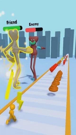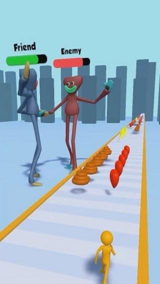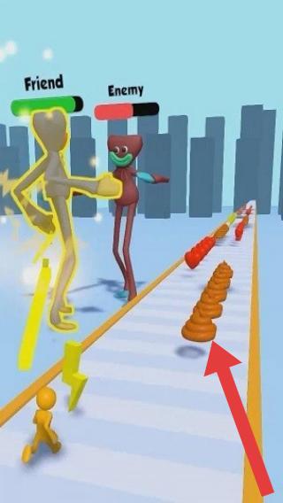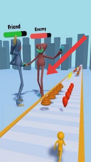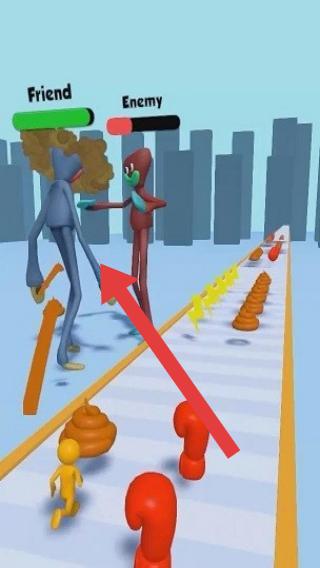 2、该游戏是一款休闲跑酷类,画面中能看到代表“Friend”和“Enemy”的标识,根据提示攻击敌人。