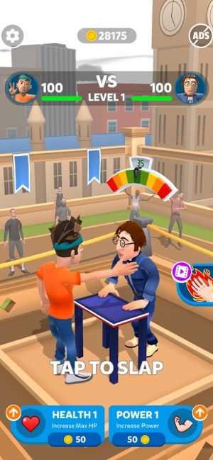 2、战斗时,点击【TAP-TO-SLAP】,把握时机扇巴掌,利用力量条(箭头指向区域),提升伤害。