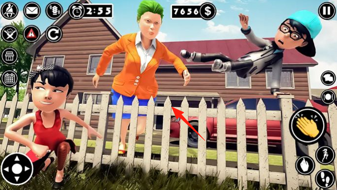 2、恶作剧后,快速移动角色,按箭头方向穿过栅栏等障碍物,与前来追捕的人物拉开距离,避免被抓到。