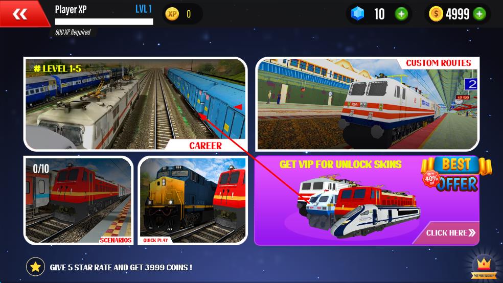 1、启动游戏后首先进入车库系统,在数十种列车类型中选择心仪车型,从冒着白烟的老式蒸汽机车到流线型的现代高铁,每种列车的操控性能与驾驶手感各不相同。
