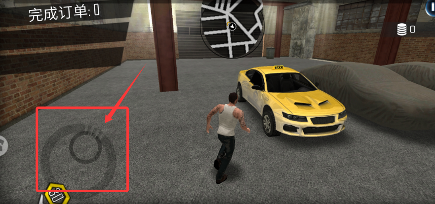 2、使用左下角虚拟摇杆控制角色行走方向,前往指定位置接管待客出租车。