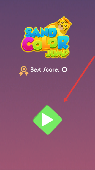 1、点击主界面绿色播放按钮,进入《Sand-Color-Jump》,操控角色跳跃,挑战色彩关卡。