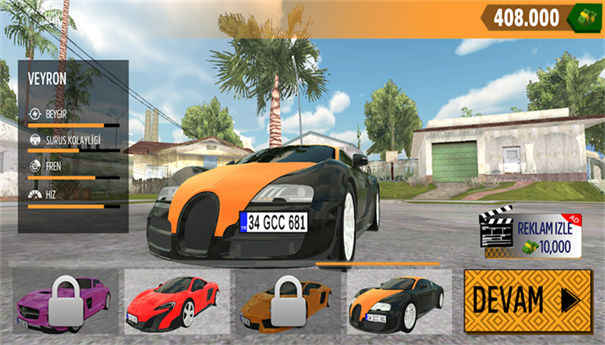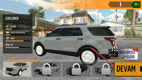 1、在选车界面,点击“DEVAM”确认灰色SUV(EXPLORER),进入操控设置,选中间方向键模式。