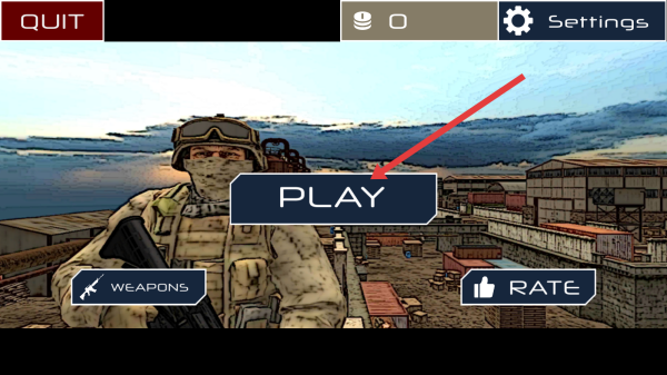 1、点击主界面【PLAY】,进入游戏,开启军事射击挑战,选择关卡,体验战斗乐趣。
