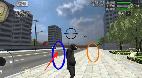 1、操控猿猴,沿箭头指向的目标(如骑平衡车的人)移动,利用左侧摇杆【调整方向】,靠近触发互动或任务。