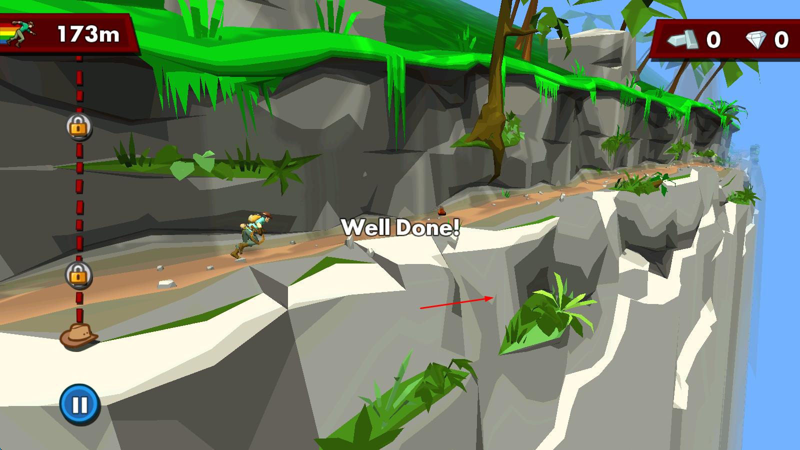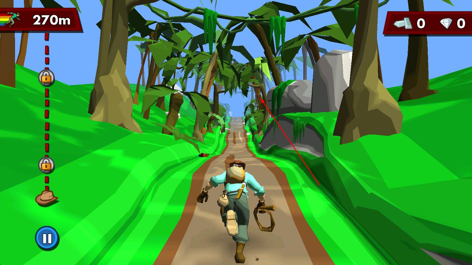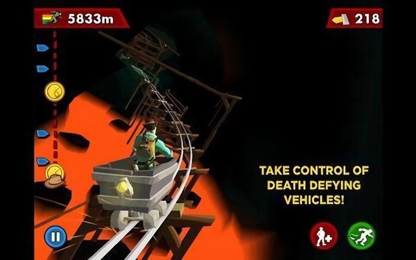 2、奔跑途中,收集钻石和金币,遇到矿车、狮子等载具时及时搭乘,利用它们快速穿越复杂地形,灵活应对不断出现的机关陷阱。