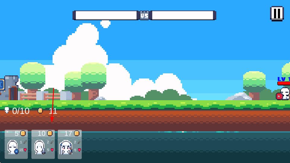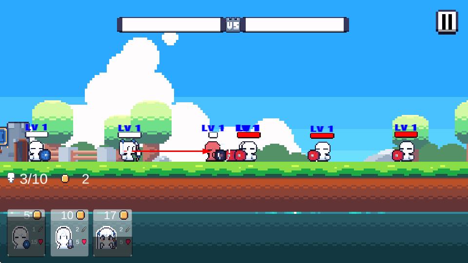 2、“兵团部署”,消耗金币,从下方选择像素小兵(不同造型),部署到草地战场。