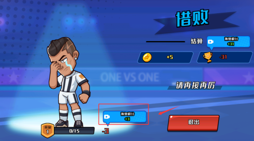 3、此时您可以通过观看15秒的激励视频广告来获取额外积分奖励,这些积分可用于解锁新球员或购买装备。