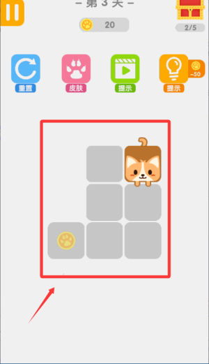 1、进入关卡后先观察整体布局,明确狗狗需要走的路径方向。尽量一笔完成画线,才能高效引导它获取金币并顺利通关。