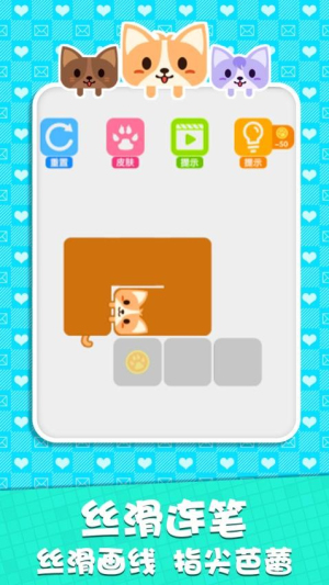 1、创新性的画笔机制,通过控制可爱的狗狗角色作为移动画笔,为传统的一笔画玩法带来全新体验,增加游戏趣味性。