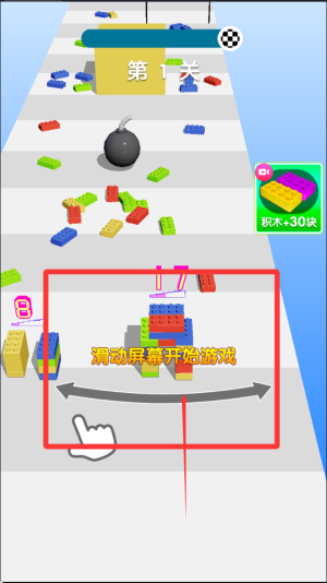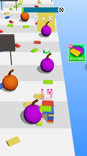 1、玩家需要通过滑动屏幕控制积木角色前进方向,灵活躲避障碍物和炸弹,同时收集各种积木碎片完成拼装。