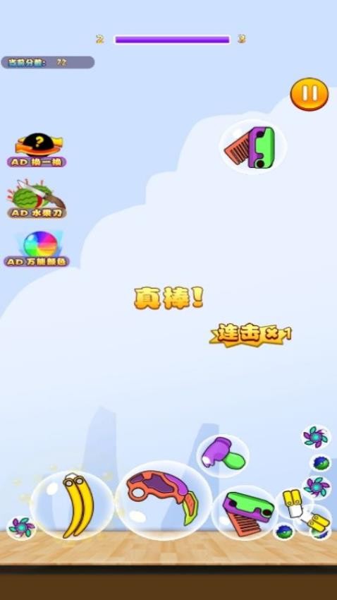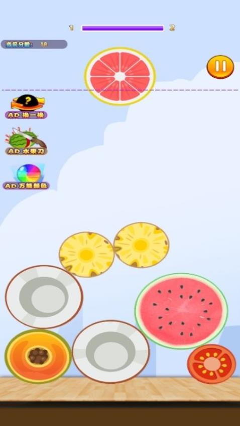 4、精美的卡通画风搭配Q弹的物理效果,水果碰撞时的动画表现生动有趣,带来愉悦的视觉享受和放松体验。