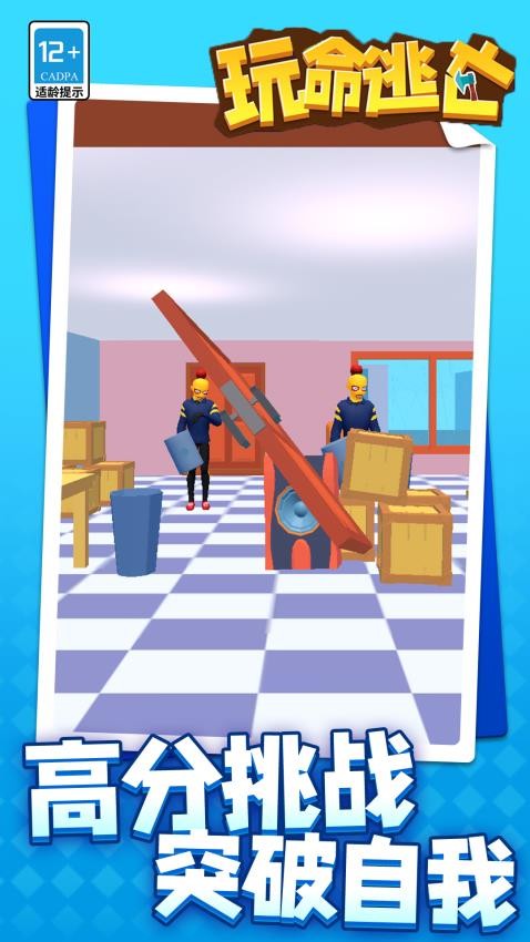 - 玩命逃亡最新版带来一场紧张又充满趣味的逃生冒险,在色彩明快的卡通世界里,既要躲避巡逻敌人的追捕,又要小心机关陷阱的暗算,探索不同场景收集关键物资