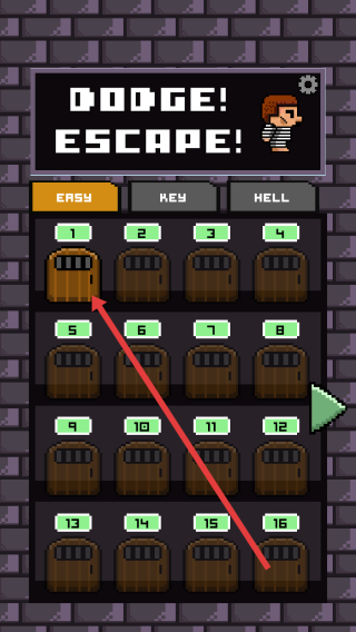 1、在关卡页,选“EASY-1”关卡,点击进入,操控像素角色,准备在地牢场景躲避障碍,尝试逃生。