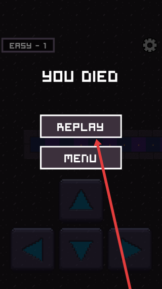 3、若角色死亡(YOU-DIED),点击【REPLAY】按钮,重新挑战“EASY-1”关卡,调整操作,完成逃生。