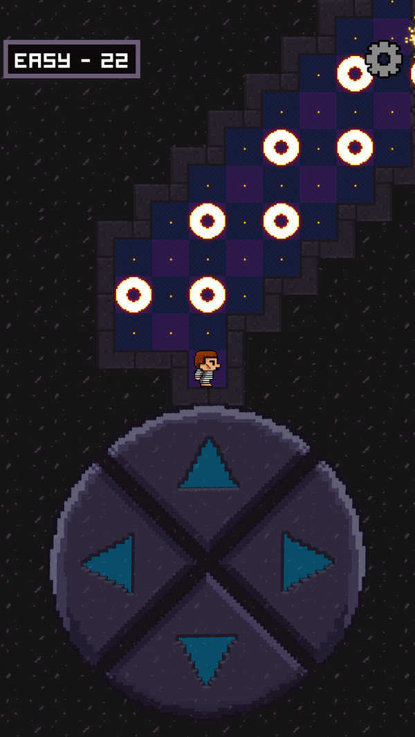 2、游戏中,按箭头指引,点击右侧方向按钮,控制角色移动,避开陷阱,沿通道推进,逃离地牢。