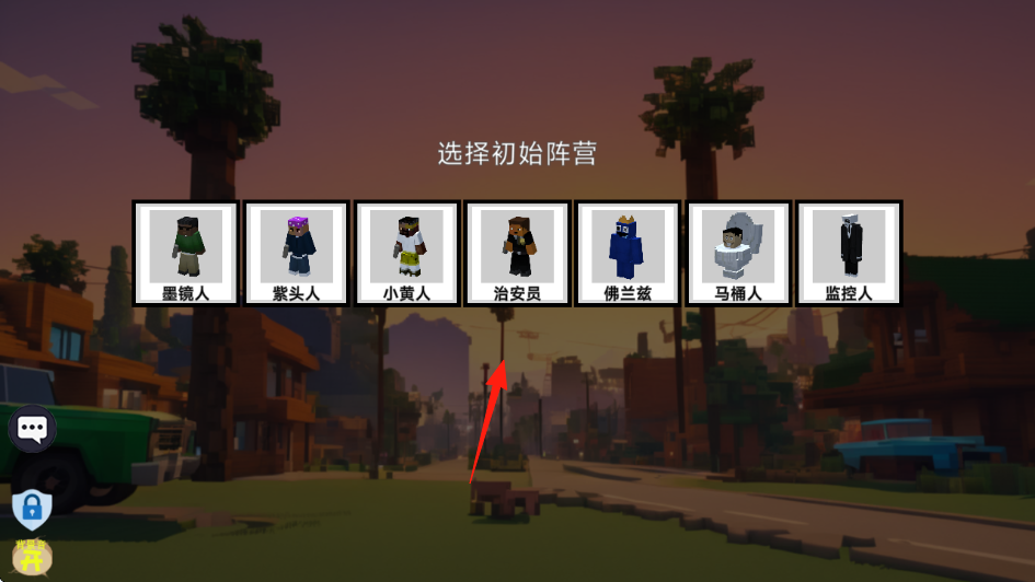 1、进入游戏,在选择初始阵营界面,点击箭头指向角色(如治安员),确定身份,开启对应阵营剧情技能。