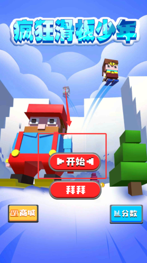 1、通过主界面开始按钮进入游戏场景,即刻开启滑板挑战之旅。