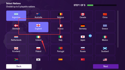 2、开启对战模式,从众多选项中挑选两个国家球队,展开激烈绿茵对决。