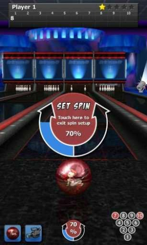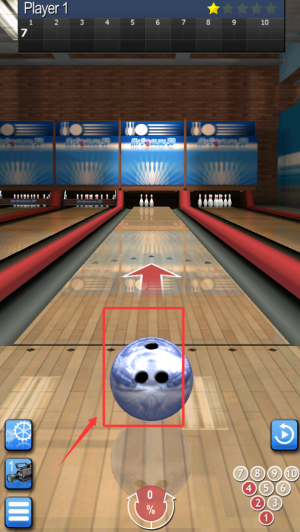 2、通过触屏操作控制保龄球滚动路线与力度,目标是将球道上的十个球瓶全部击倒。