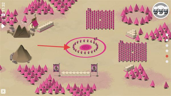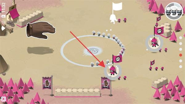 3、指挥白色小兵部队,移动至粉色旗帜据点,夺取并控制该区域。