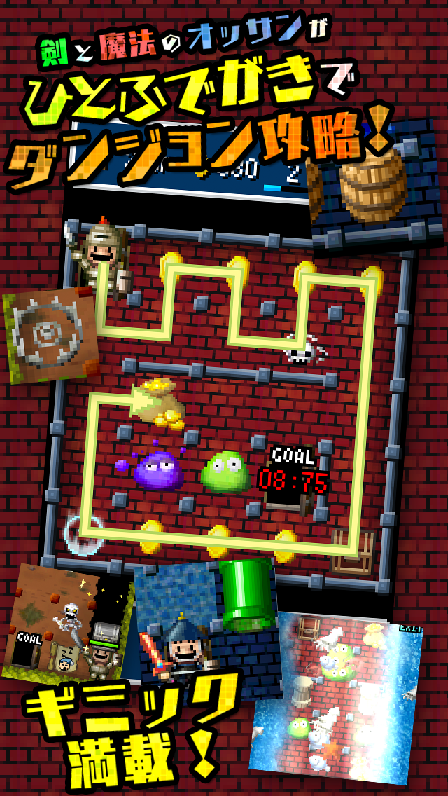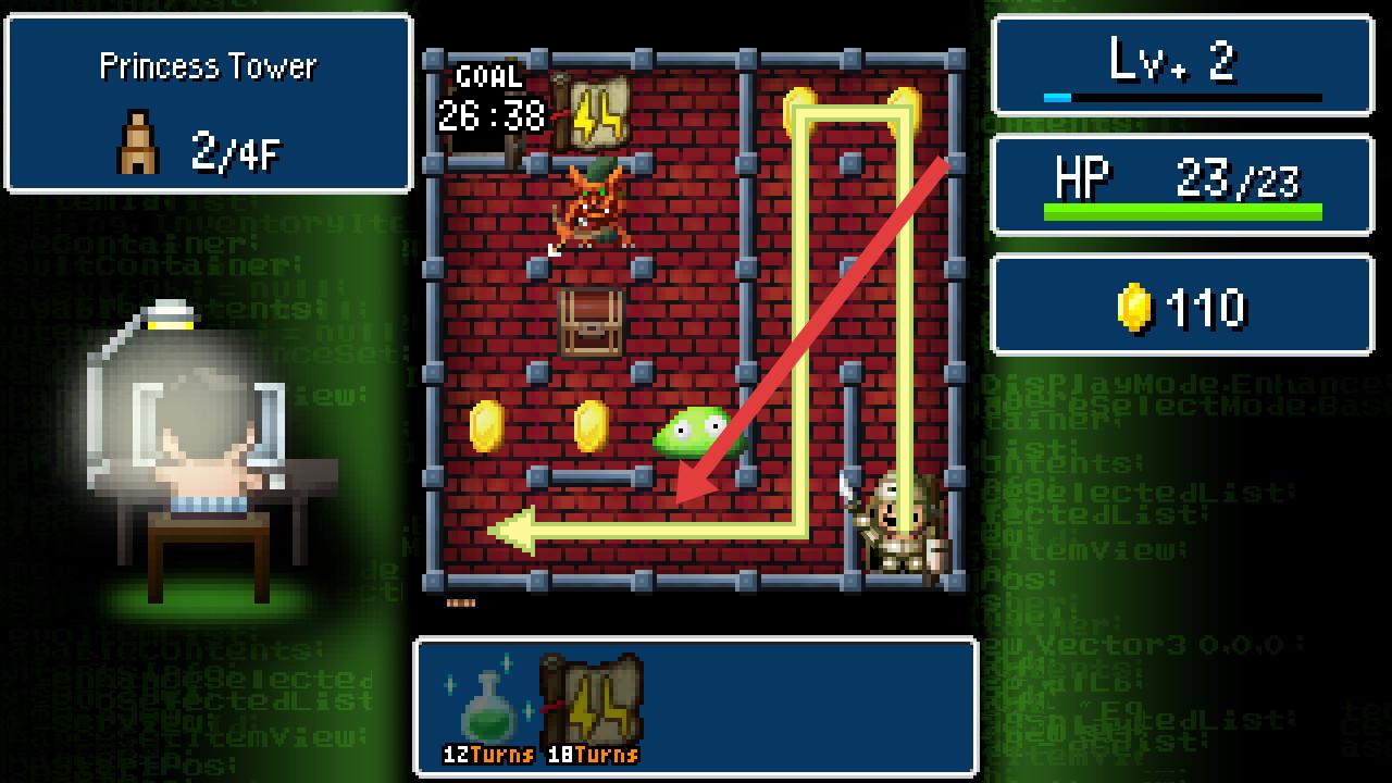 花花地牢是有趣励志的RPG作品,主角是上班族Yamada君,白天疲惫如死狗,夜晚回到家后HPMP全满,在自己开发的复古八位像素风格地牢中成为勇敢成功的英雄,剧情独特新颖,既描述他的现实生活,也展现他在游玩中的冒险旅途,他要拯救的公主酷似隔壁女孩,核心是用手指划出从入口到出口的路线。