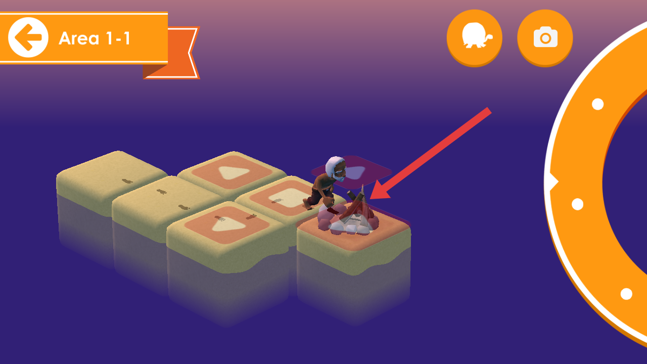 2、在【Area1-1】的关卡,需要操控角色与地面的篝火互动,触发场景事件,推进关卡进程。