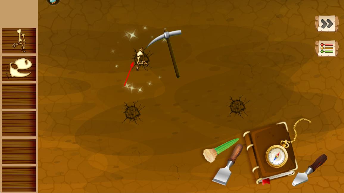 1、进入游戏后,选择初始考古地点,熟悉洛阳铲、刷子等基础挖掘工具的使用,了解化石埋藏的大致迹象与挖掘流程。