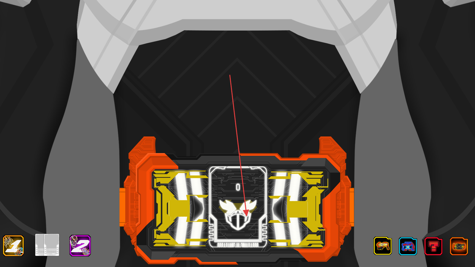 1、进入腰带界面,选对应骑士卡牌(如“1”“2”),插入腰带卡槽,触发变身音效,熟悉基础变身操作。