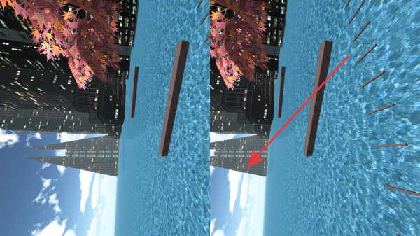 2、在水景城市场景,观察建筑、树木布局,移动视角熟悉环境,留意场景互动点,开启探索第一步。