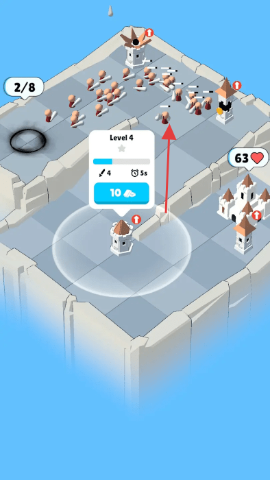3、持续升级应对浪潮:随着敌人浪潮越来越强,需及时升级防御塔增强战力,从基础攻击到特殊效果逐步解锁,让防御能力与敌人强度同步提升,在无尽的敌人进攻中坚守城堡。