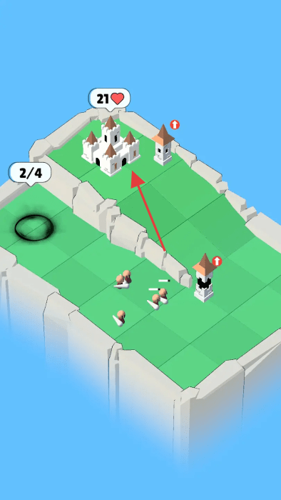 2、极简设计专注策略:采用极简主义设计,画面干净且视觉效果锐利,去除多余元素让玩家完全专注于战略布局,几座塔与一座城堡的简洁设定,让防御规划成为核心。