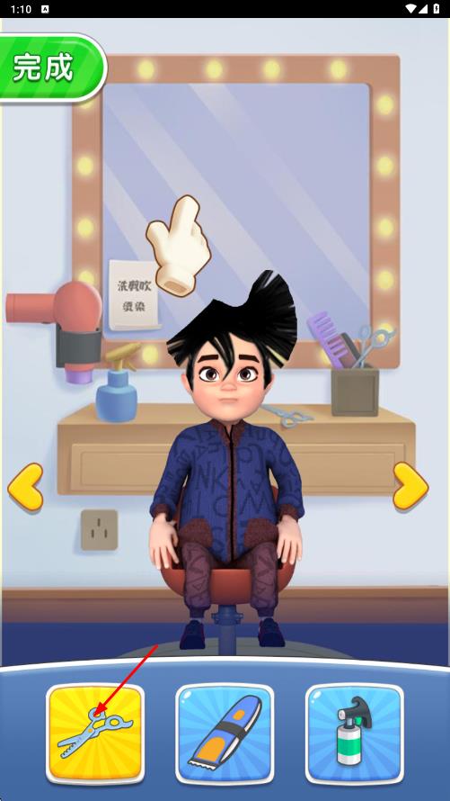 2、道具高效运用:初期用基础工具完成简单发型积累资金,解锁电推、染膏后尝试复杂造型,用定型道具提升发型精致度,提高客人满意度。