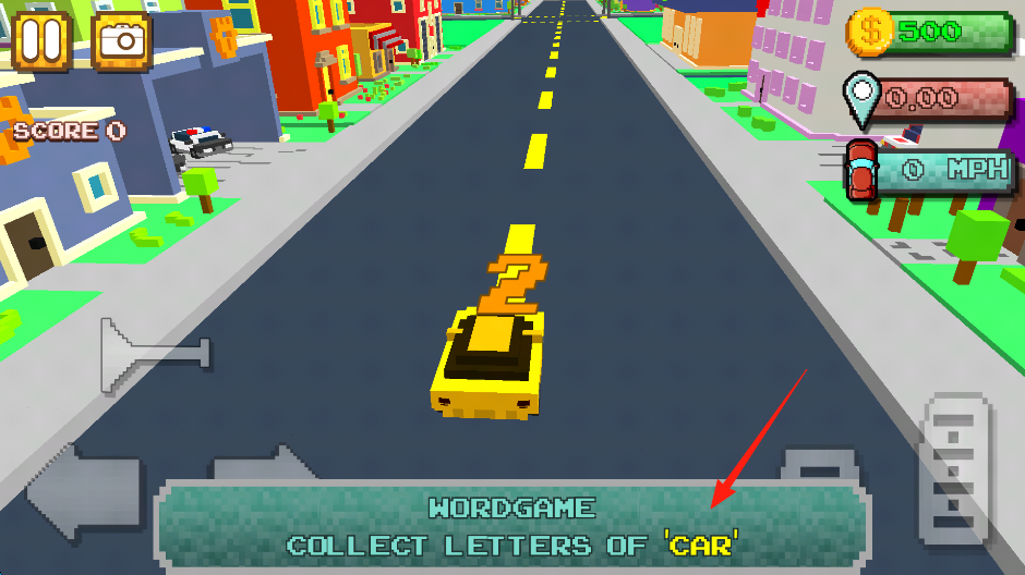 3、进入街道竞速场景,同时驾驶小车避障,收集齐字母完成任务,考验驾驶与收集的协同能力,体验竞速与字母收集结合的玩法,借任务指引增加游戏目标性,感受双重挑战的乐趣。