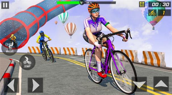 2、竞速与休闲结合:既可以参与计时竞速挑战,比拼骑行速度与技巧,也能选择休闲模式慢悠悠欣赏沿途风景,满足不同玩家的需求,兼顾刺激与惬意。