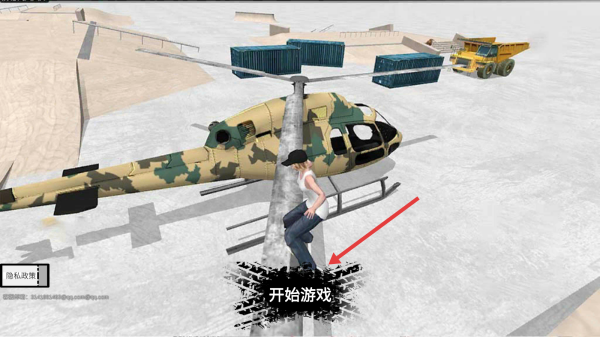 1、点击【开始游戏】,进入滑板游戏场景,可看到迷彩直升机等元素,开启滑板挑战。