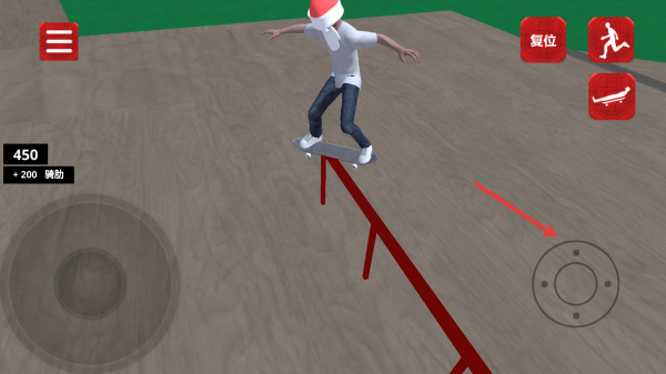 3、遇到栏杆等道具时,用右侧技能按键触发滑板特技动作(如平衡滑杆),完成关卡。