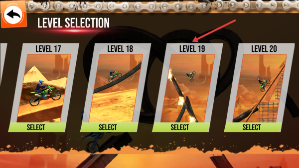 2、在关卡选择界面,找到【LEVEL 19】关卡并点击其对应的【SELECT】按钮,确认选择后即可进入该关卡,准备迎接挑战。