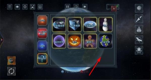 1、进入游戏后选择太空场景,从宇宙沙盘里挑选目标星球(如地球、火星或虚构行星),熟悉屏幕上的操作按钮,包括选择破坏工具、调整视角、放大缩小星球等基础功能。