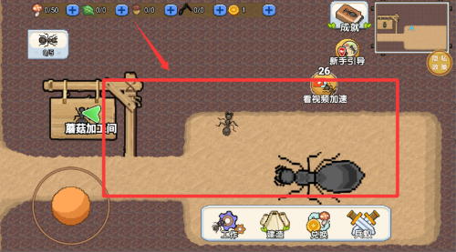 2、军事扩张环节,培育特殊兵种对抗敌对生物。火蚁擅长近战,弓背蚁可远程攻击,根据敌人类型搭配作战单位。