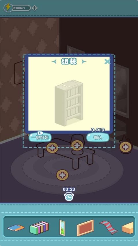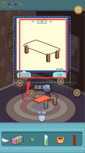 1、通过拖拽操作将家具部件组合成完整物品,然后放置在房间的合适位置。每个部件都有特定的连接点,需要找到正确组合方式。