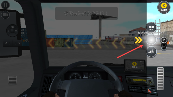 1、驾驶卡车时,若提示“你没有带好安全带哦!”,点击右侧对应提示的按钮,系好安全带,消除提示。