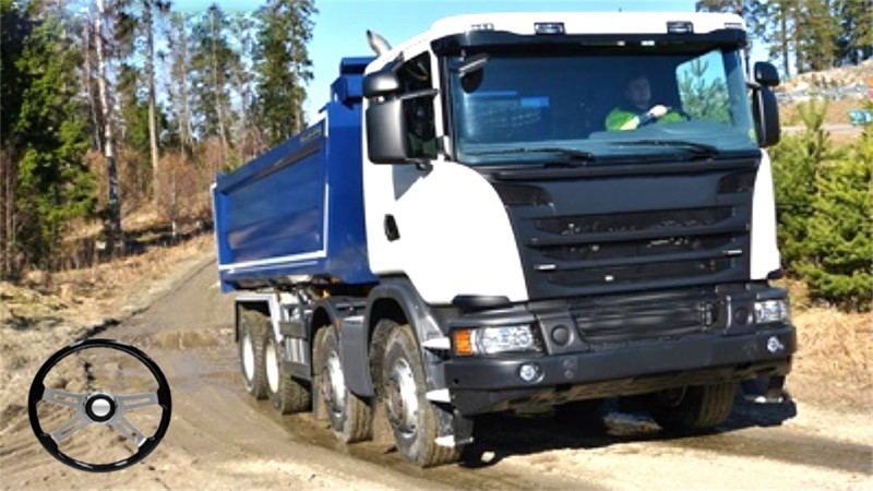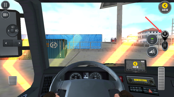 2、根据箭头指引,操作右侧换挡装置,调整挡位,配合方向盘,控制卡车在场地内行驶。