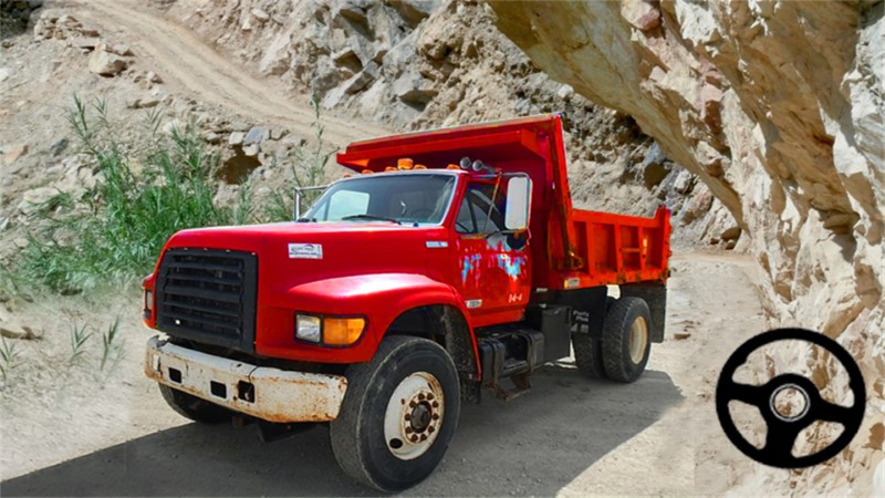 3、利用左侧视角切换按钮,调整观察角度,查看卡车周围环境,避开障碍物,按路线完成运输任务。